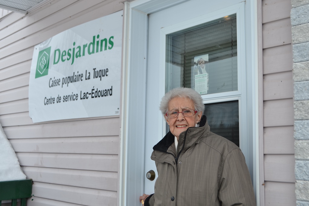 Elle n’a que de bons mots pour la direction de Desjardins, Caisse de La Tuque, chez qui elle observe un beau geste de délicatesse. «J’ai beaucoup apprécié que Francine Bordeleau (directrice) et Jocelyne Ricard (directrice, opérations et transactions assistées) soient venues chez moi pour m’avertir qu’elles devaient fermer la Caisse. Elles ne voulaient pas faire ça par téléphone», insiste l’employée retraitée de la Caisse.