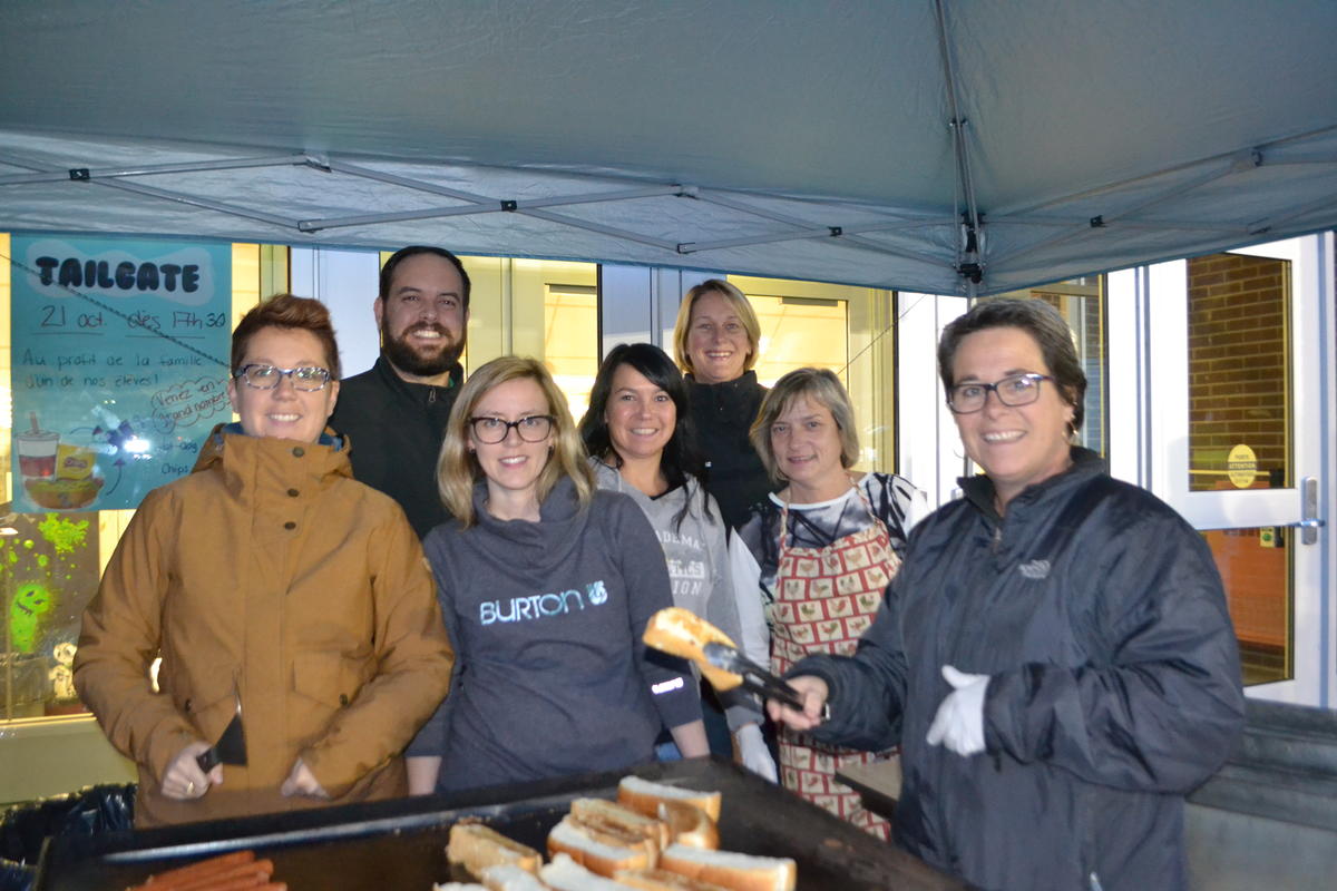 Des membres du personnel de la Commission scolaire de l’Énergie ont tenu à organiser un «tailgate» au profit d’un élève qui se bat actuellement contre la maladie. Un combo de deux hot dogs, croustilles et boissons gazeuses était proposé et les profits sont allés à la famille de cet élèves.