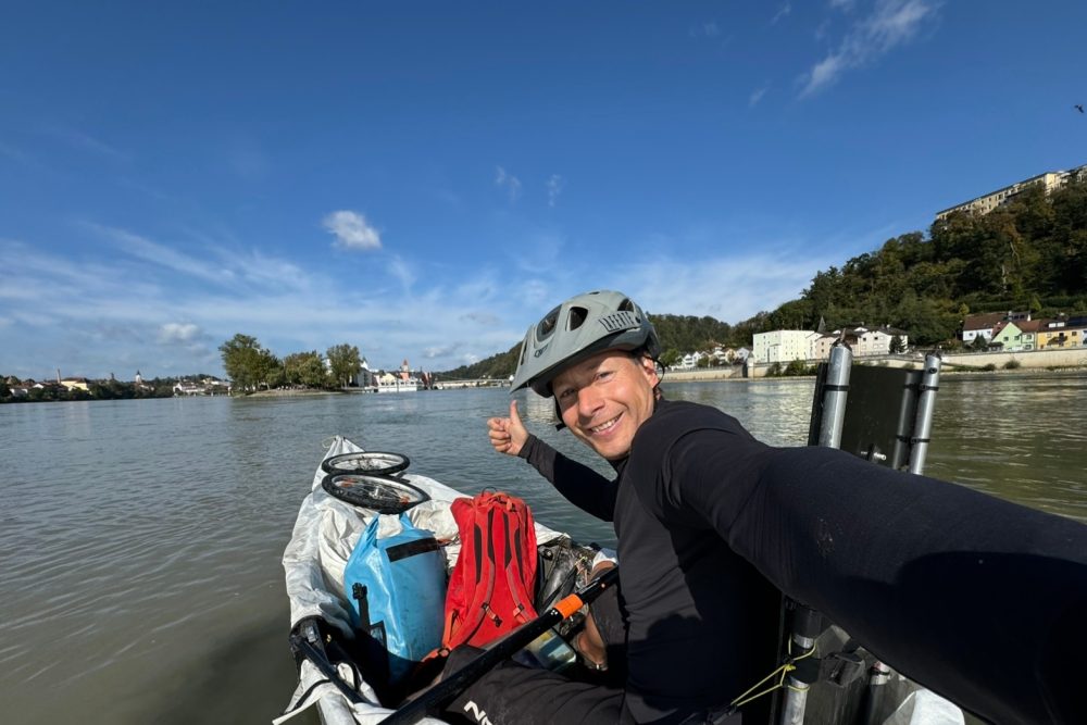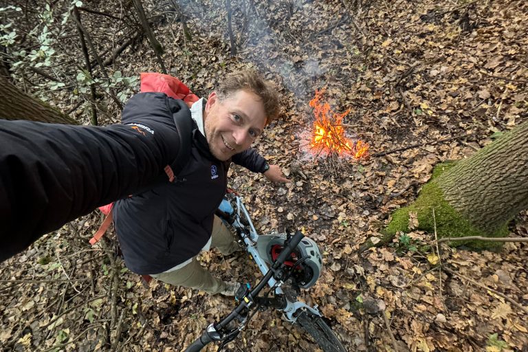 “Dans toutes mes expéditions, le plus difficile, c’est moi (rires). C’est toujours d’apprendre à me gérer et de vivre le moment présent, sans me projeter dans le futur. Du moment où tu te projettes, le moment présent peut devenir plus difficile. Sur le terrain, la tempête Boris m’a ralenti dans mon trajet. J’étais dans la flotte et j’ai été obligé d’arrêter, puisque la navigation sur le fleuve était interdite. Ensuite, j’ai composé avec les dégâts de la tempête, notamment dans les pistes cyclables. Une chance que je suis bien équipé avec mon canot muni de roues et mon vélo, ce qui m’a permis de bien jouer avec le fait d’être sur l’eau lorsque c’était possible, et sur route lorsque c’était possible.”